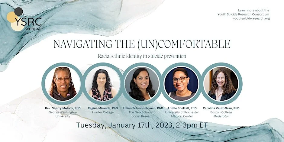 Oct 3 Public Mental Health and Youth Suicide Prevention Thursday, October 3, 2024 10:00 AM 11:30 AM Google Calendar ICS View Event → Jan 17 Navigating the (un)comfortable Tuesday, January 17, 2023 2:00 PM 3:00 PM Google Calendar ICS View Event →